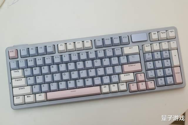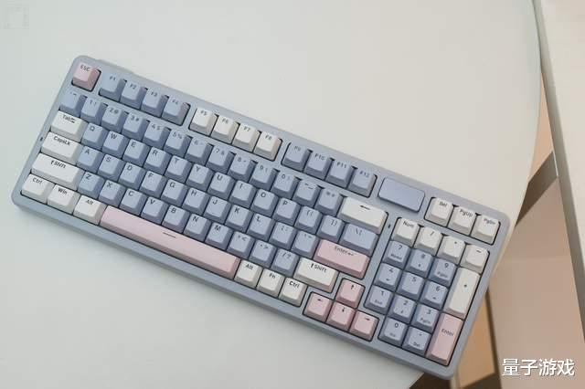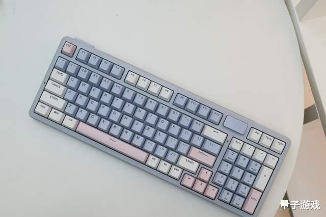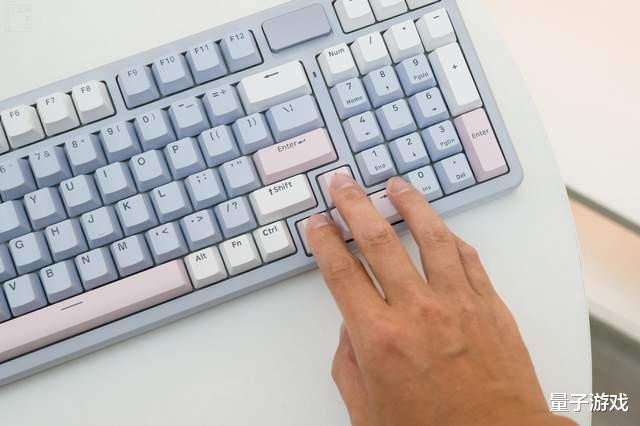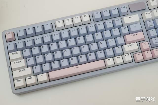 这款键盘的配色十分好看,还有多种选择,我的这款叫做莫奈仙踪,还有初号骑士和幻影机甲两种选择,这款键盘的配色和设计不扎眼,摆在桌面上异常和谐。机身线条带一点柔和的弧度,边角磨得圆润,不会像某些棱角分明的键盘那样在手腕移动时硌着皮肤。PBT键帽表面的磨砂质感很明显,指尖摸上去能感到细微的阻力,敲了几小时也没见油光。
